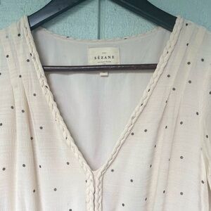 Sezane midi dress. Cream with tiny black dots. In like new condition. Fully lined. Beautiful flutter sleeves. Size 34