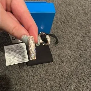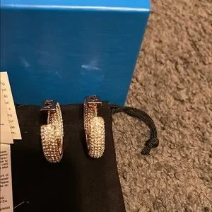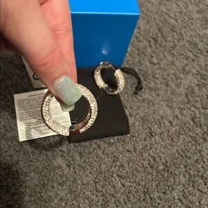 Add a touch of elegance with these stunning rose gold hoop earrings, adorned with shimmering crystals. Perfect for any occasion. 1” drop, hinge opening with post back.