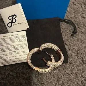 Joan Boyce Rose Gold Hoop Earrings with Crystals