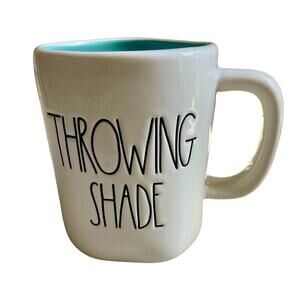 RAE DUNN "THROWING SHADE" Double Sided Coffee Mug Sunglasses Blue Interior