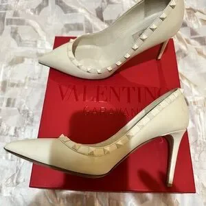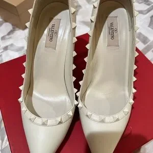 Iconic and elegant Valentino Garavani Rockstud pumps in ivory.