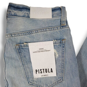 NWT Pistola Cassie Distressed Super High Waist Button Fly Straight Leg Jeans Sz. 29x31 By My Side