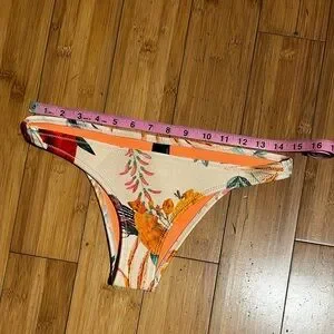 Dive into summer with this vibrant floral bikini bottom. Featuring a stunning allover floral print with vibrant orange interior hue, it's perfect for beach days. New without tag excellent condition, see photos for details and approximate measurements.