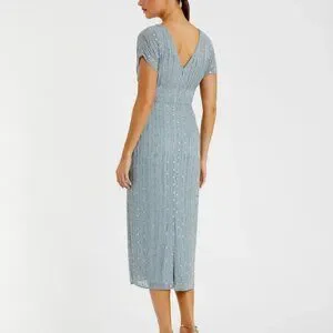 Make a statement in our Beaded Cap Sleeve Midi Dress, a glamorous option for your next event. Featuring intricate beading and a flattering sheath silhouette, this dress exudes charm and allure. Ideal for weddings, cocktail parties, or formal events, it ensures you dazzle with effortless style and undeniable grace.