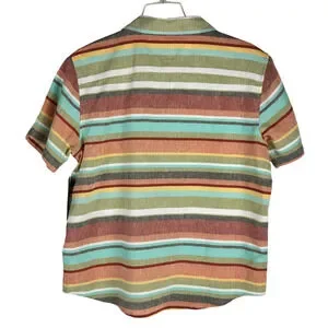 RVCA Riviera Boys Button Up Shirt Sz M Short Sleeve Pocket Striped Logo Colorful