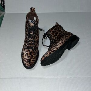 Step out in style with these chic leopard print boots. Perfect for adding a bold touch to any outfit. Zipper on the inside. Textile upper, balance manmade material. Brand new without the box. Soft to the touch fabric.