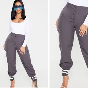 🍓 Pretty Little Thing Dark Gray Pocket Detail Cargo Pants Size 8 EUC