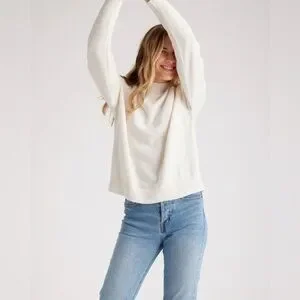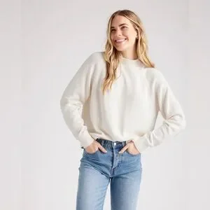 Quince 100% Organic Cotton Mock Neck Sweater Size Small White Summer Nights