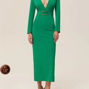 Step out in style with this elegant green long sleeve dress. Perfect for any occasion, this dress features a sophisticated design with a flattering fit.