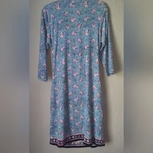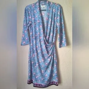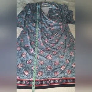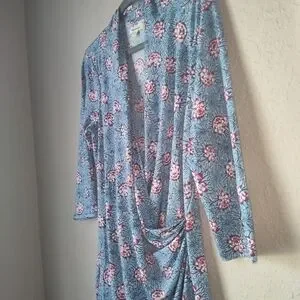 Max Studio Knee Length Wrap Blue Floral Dress Size XL