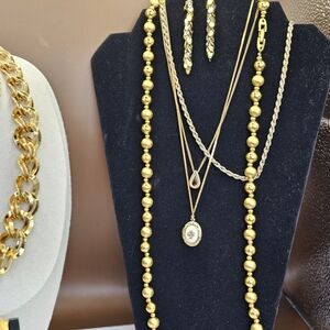 Napier earring and 30" beaded gold necklace