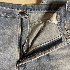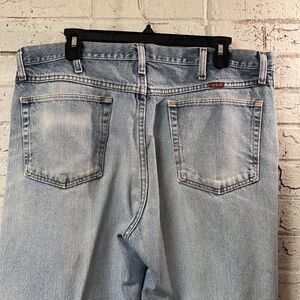 VINTAGE RUSTLER DISTRESSED FADED LIGHT BLUE DENIM JEANS 38x32