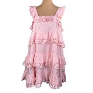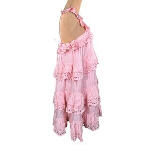 Innika Choo Schiffli Frill Mini Dress 3 US Size 12 Pink Eyelet Lace