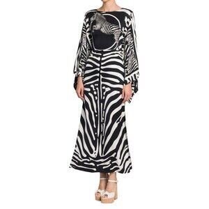 From the Zebra Collection. Cut in a boxy silhouette, DOLCE&GABBANA's silk maxi dress is elevated by wide kimono sleeves. The charmeuse style is defined by mixed zebra prints.