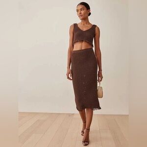 NWT Reformation Lieta cotton open knit set in chestnut - size s