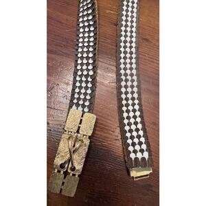 Vintage Art Deco Gold Metallic Fish Scale Elastic Glam Stretchy Belt