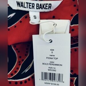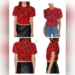 (1586) Walter Baker Fiona Print Short Sleeve Ruched Top Size Small