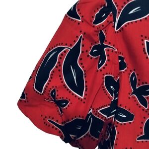 This Fiona top stands out with its bold leaf pattern and boxy fit. it is detailed with asymmetric ruching and and elasticized hem