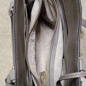 Elegant and versatile, this Michael Kors handbag in gray is perfect for any occasion. Crafted with attention to detail, it offers both style and functionality. Excellent condition. Barely used. No stains or marks.