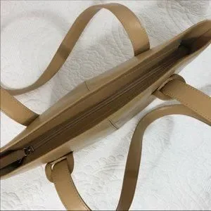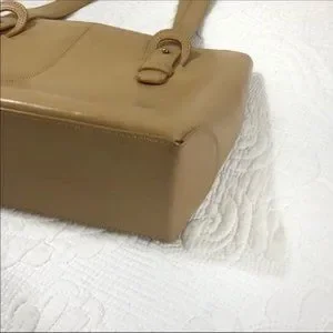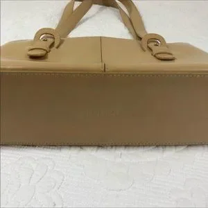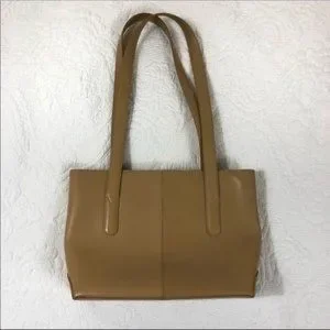 M London Italian Leather Handbag. Tailored shoulder handbag with 12” shoulder straps. In good used condition. No scrapes, scuffs or tears. Small courier wear on right front. See pictures. 12.5” deep, 8.5” long, 3” width.
