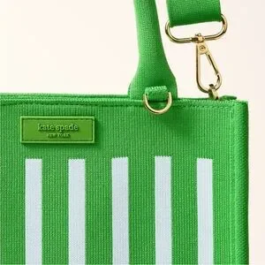 Add a pop of color to your outfit with this Stripe Knit Crossbody Bag from kate spade new york x Target. The bag features a stripe design in green and blue with a zip closure, removable shoulder strap and attached double handles. Perfect for keeping your essentials handy with style, plus an available D-ring to add any of your favorite keychains or charms.