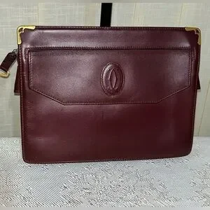 This sophisticated burgundy leather Cartier Women’s Clutch is perfect for any occasion. Crafted with attention to detail, it offers both style and functionality.