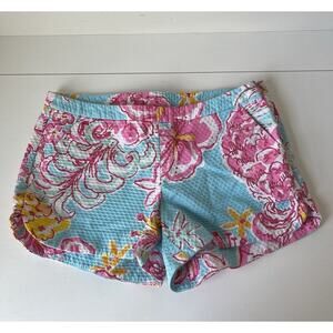 Lilly Pulitzer Women's Floral Shorts Size 2 Blue & Pink Pockets Cotton
