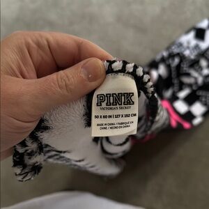 Victoria's Secret PINK Black and White Blanket approximately 50 x 60