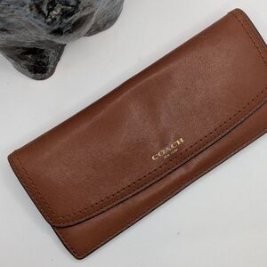 Elegant brown leather wallet by Coach. Perfect for everyday use. small toiletries pouch
