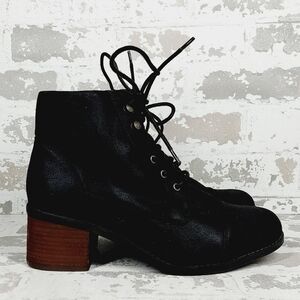 New Bella Vita Sarina Womens Black Block Heel Wide Lace Up Booties H174