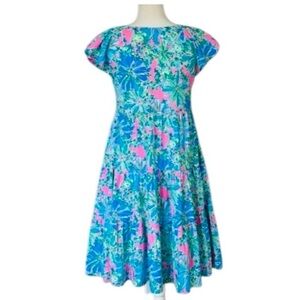 This charming Women’s dress features a vibrant floral pattern in blue and pink. Perfect for any occasion, it offers both style and comfort. Runs big. I usually wear a 6 and xxs fits perfectly.