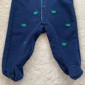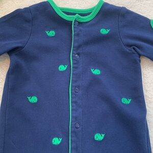 Little Me Navy Blue & Green Whale Footie 6M EUC