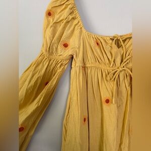 Free People Emory Yellow Embroidered Long Sleeve midi dress size X-small