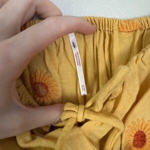EUC Free People Emory Yellow Embroidered Long Sleeve midi dress size X-small