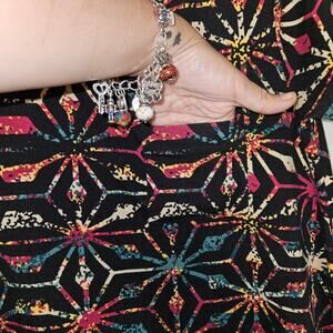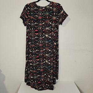 Beautiful black short sleeve, multi- color dress. Perfect for spring and summer days. Or just lounging around. It has a small pocket on the right chest and a nice flowing bottom.