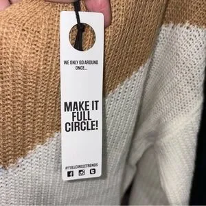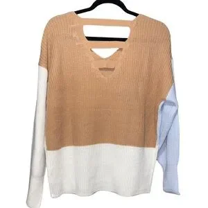 Tan and Blue V-Neck Colorblock Sweater