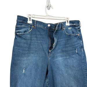Express 90s Wide Leg Jeans Womens 16S 16 Short Blue Distressed Raw Hem High Rise