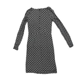 LOFT Black and White Mosaic Side Pleat Knee Length Long Sleeve Dress, Size S