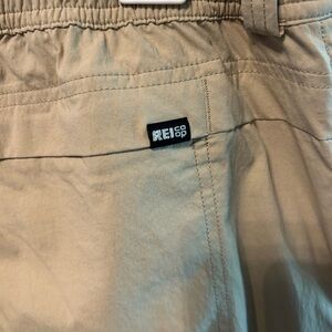 Explore the outdoors with these versatile tan cargo pants. Perfect for any adventure. Zippers convert them into shorts without removing your shoes