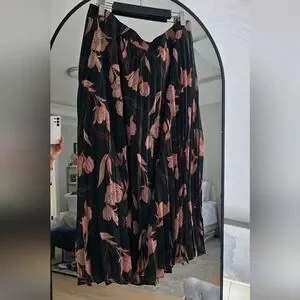 A New Day Pleated Floral Midi Skirt. Elastic waist band, size XL. Fully lined.