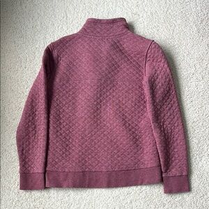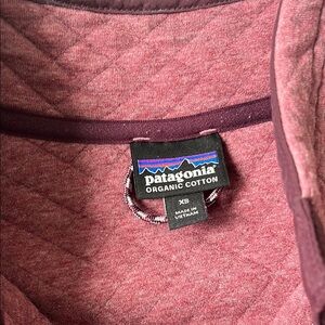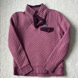 Stylish Patagonia quilted pullover in a gorgeous burgundy color. Features a button-up collar and chest pocket.