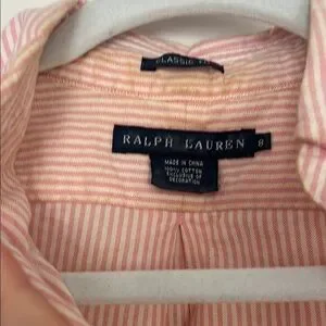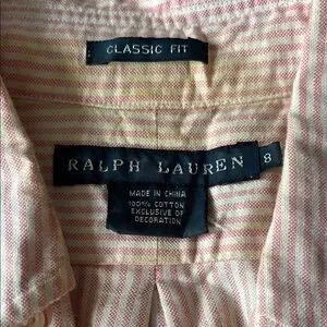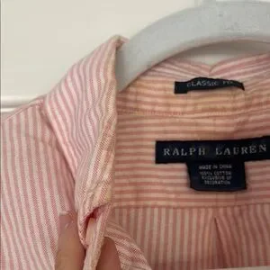 Classic Ralph Lauren shirt with pink and white stripes. Perfect for a casual look.