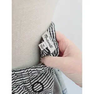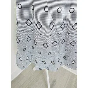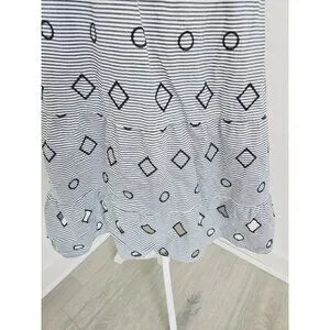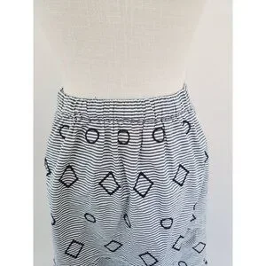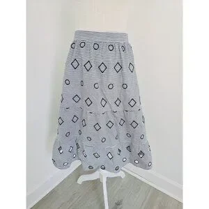 Madewell Embroidered Stripe Midi Navy White 100% Cotton Geometric Full Skirt XS