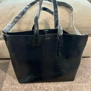 Elevate your style with this sleek croc-embossed black faux leather tote bag. Perfect for any occasion, this bag combines elegance and functionality.