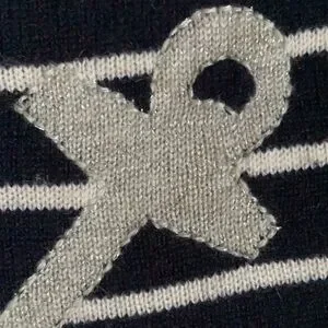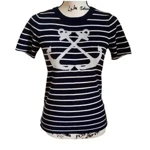 Gorgeous super soft Italian cashmere top with metallic silver anchors design and navy white striped. In excellent as new condition. Size Small- bust measures 17 inches across 24 inches long. Fabric has some stretch. $148