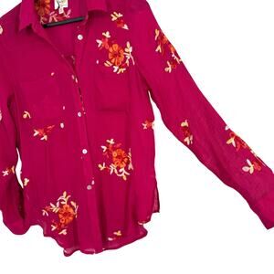 Anthropologie Fig & and Flower Small Pink Boho Bohemian Blouse Shirt Top Floral