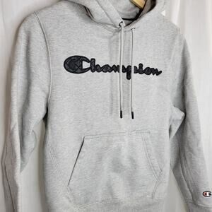 Champion Heather Gray Hoodie with Black Quilted Logo, XS