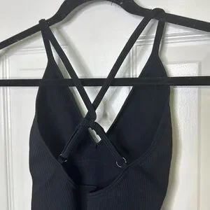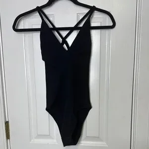 Black Plunging V-Neck Bodysuit with Strappy Back NWOT
