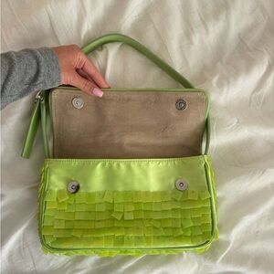 Green leather and “mother of pearl” style sequin embellishments