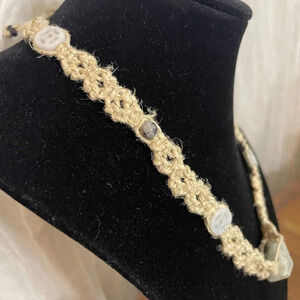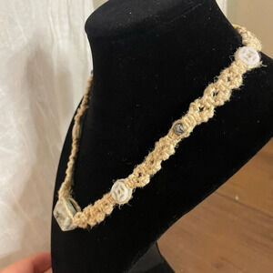 NWT Handmade Choker Necklace Stone beads, Macramé, Beaded, 16”/40.64 cm.